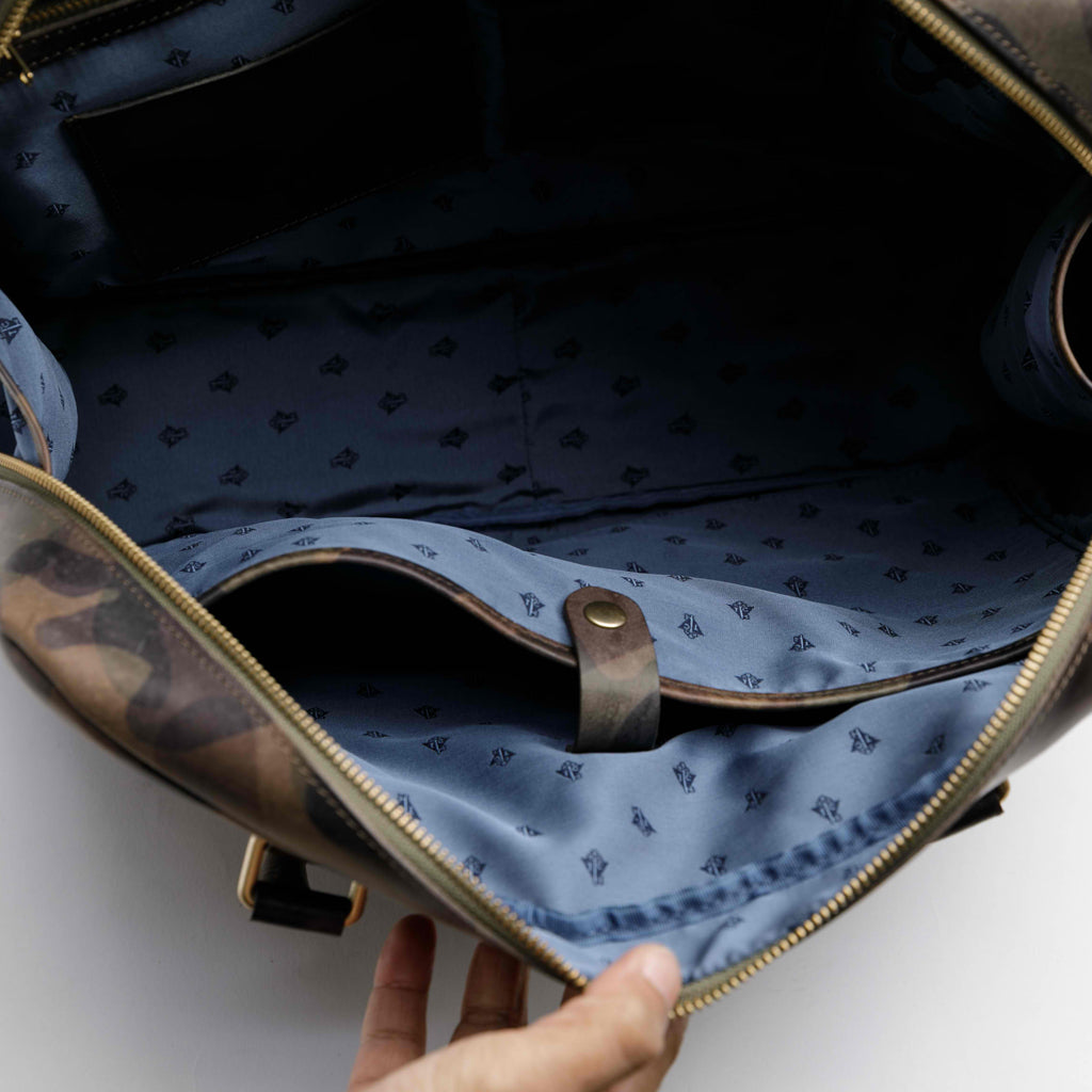 ネクタイ生地用の織機によるオリジナルモノグラム柄、カラーは拘りの”トワクレブルー”で統一
