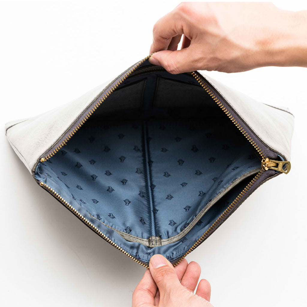 流行の抱えクラッチバッグ、バッグインバッグとしてもビジネスライフを彩る。