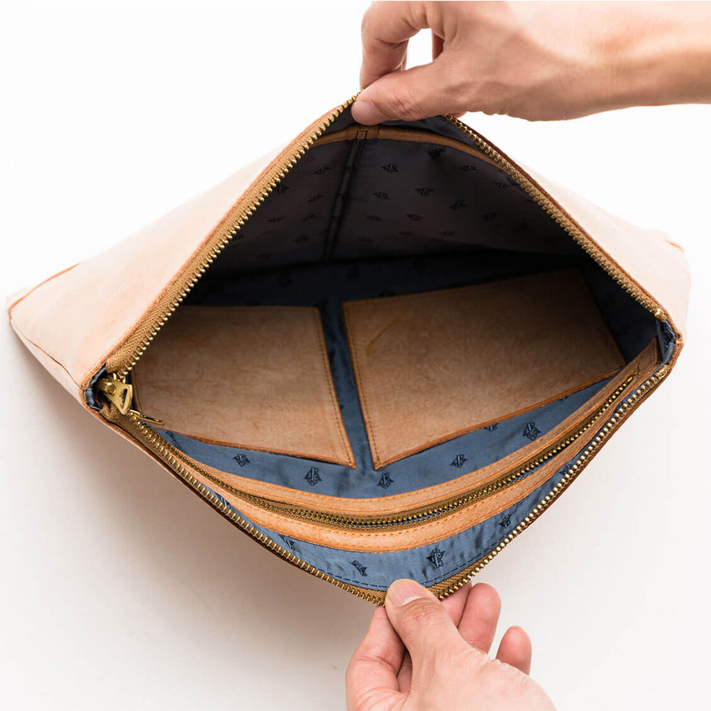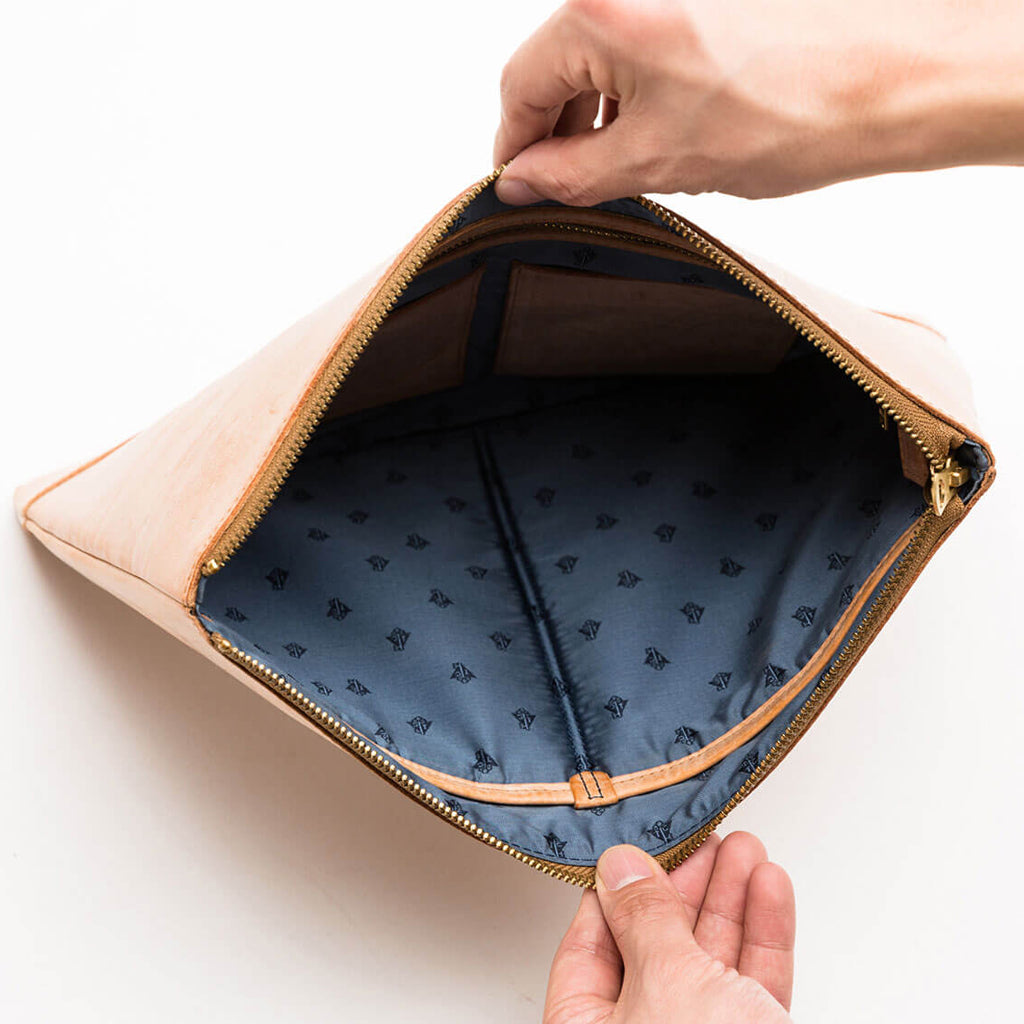 流行の抱えクラッチバッグ、バッグインバッグとしてもビジネスライフを彩る。