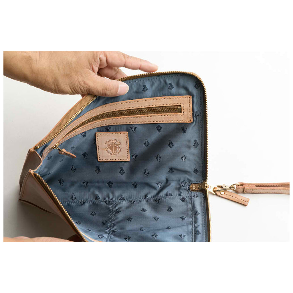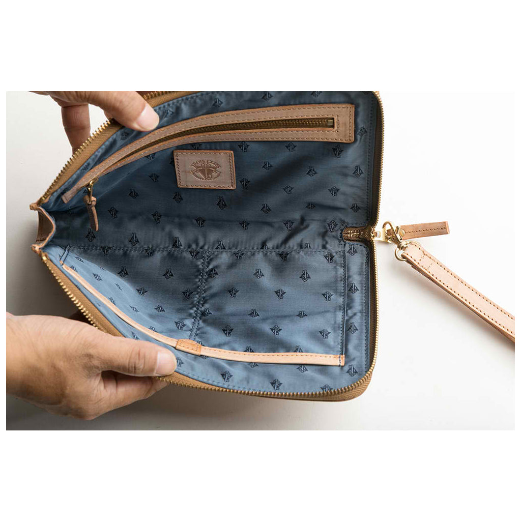 コンパクトサイズのクラッチバッグですが、長財布、スマートフォン、キーホルダーなどたっぷり収納出来ます。また脱着式持ち手が付いて持ち歩きにも便利です。外側のスリット式ポケットにはPASSやチケットも収納出来て出し入れが簡単です。